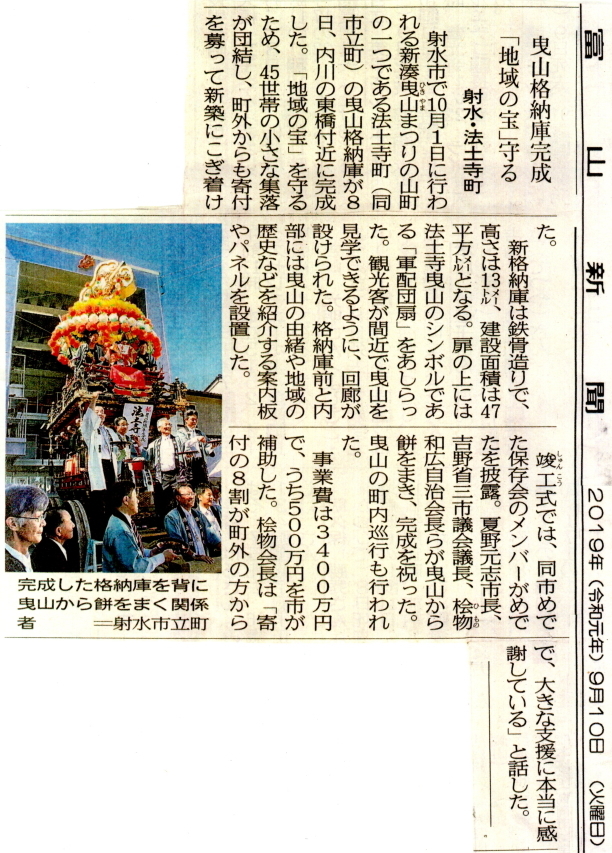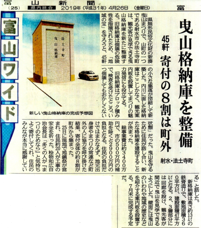 | 富山新聞(H31.04.26) 北日本新聞(H31.04.26) 富山新聞(R01.09.10) 北日本新聞(R01.09.10) |