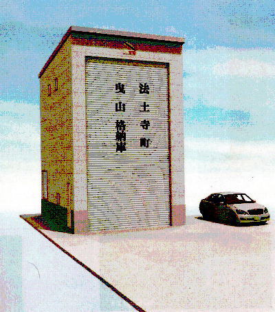 | 6.建設構想 (1)観光客に「法土寺の曳山」を間近に見学していただくため回廊方式をとる (2)建設費をできるだけ抑えること (3)曳山のシンボルである「軍配龍」(欅板彫刻)を正面上部に配置する (4)曳山観光案内版の作成(町内・曳山の歴史) (5)これまでの格納庫の保存方法がベストであることから自然換気が出来るよう配慮する |