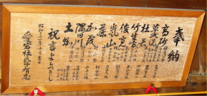 また、曲目と有志名の「祝事:よもつ きじ」木製額も奉納。