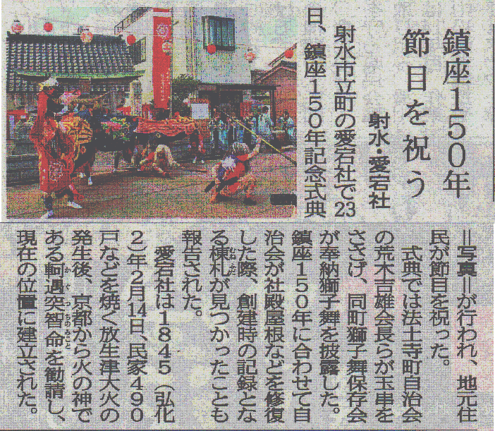 愛宕社鎮座150年記念