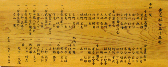 愛宕社150年祭奉加一覧